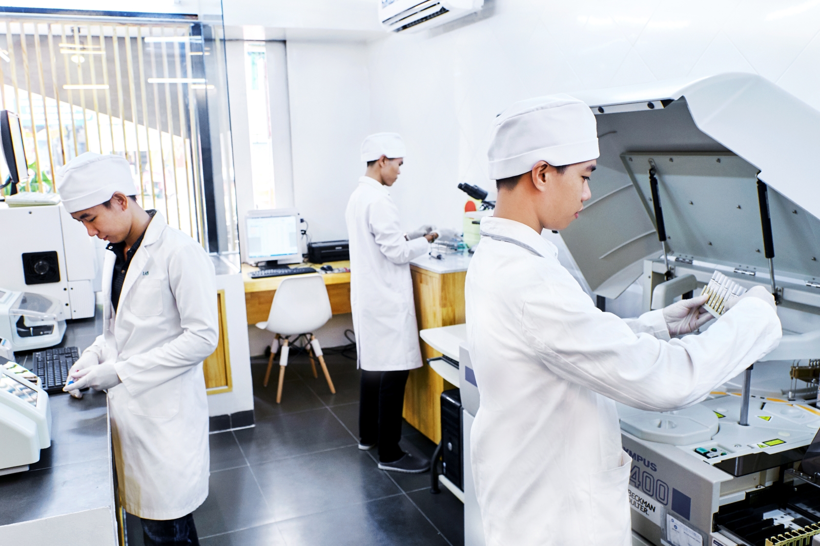 Bên cạnh đó, với đội ngũ kỹ thuật viên xét nghiệm từng làm việc tại các bệnh viện lớn như Bệnh viện Trưng Vương, Bệnh viện 115 tham gia thực hiện các kỹ thuật chuyên môn để cho ra kết quả chính xác tuyệt đối và đảm bảo chất lượng chuyên môn là niềm tin cho quý bác sĩ trong việc phát hiện, chẩn đoán, theo dõi điều trị bệnh nhân.